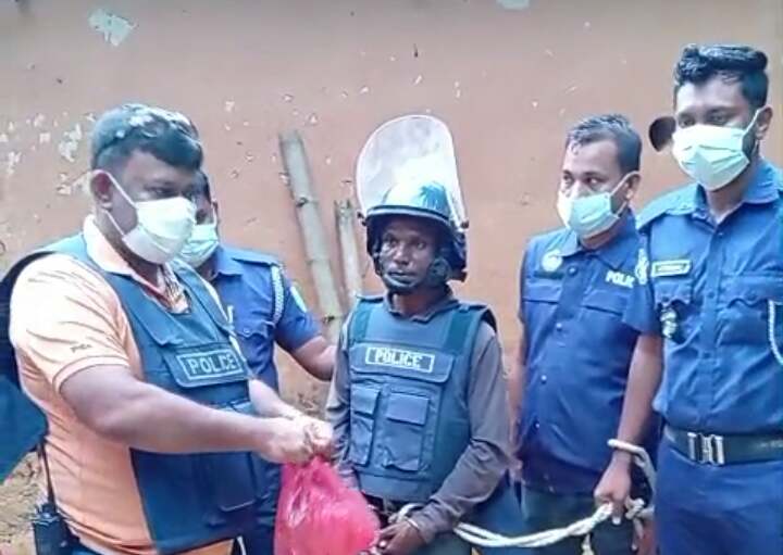 A 60-year-old Mayun Mia was murdered in Kamalganj, Moulvibazar, over a dispute over interest money transaction. After recovering Mayun Mia’s body, Moulvibazar District Police went to the field to unravel the mystery of the murder. Finally, the police have arrested Ripon Debnath (40), the main accused in the murder. The police have recovered the sharp knife used in the murder, the broken parts of the deceased’s mobile phone and the SIM card.
