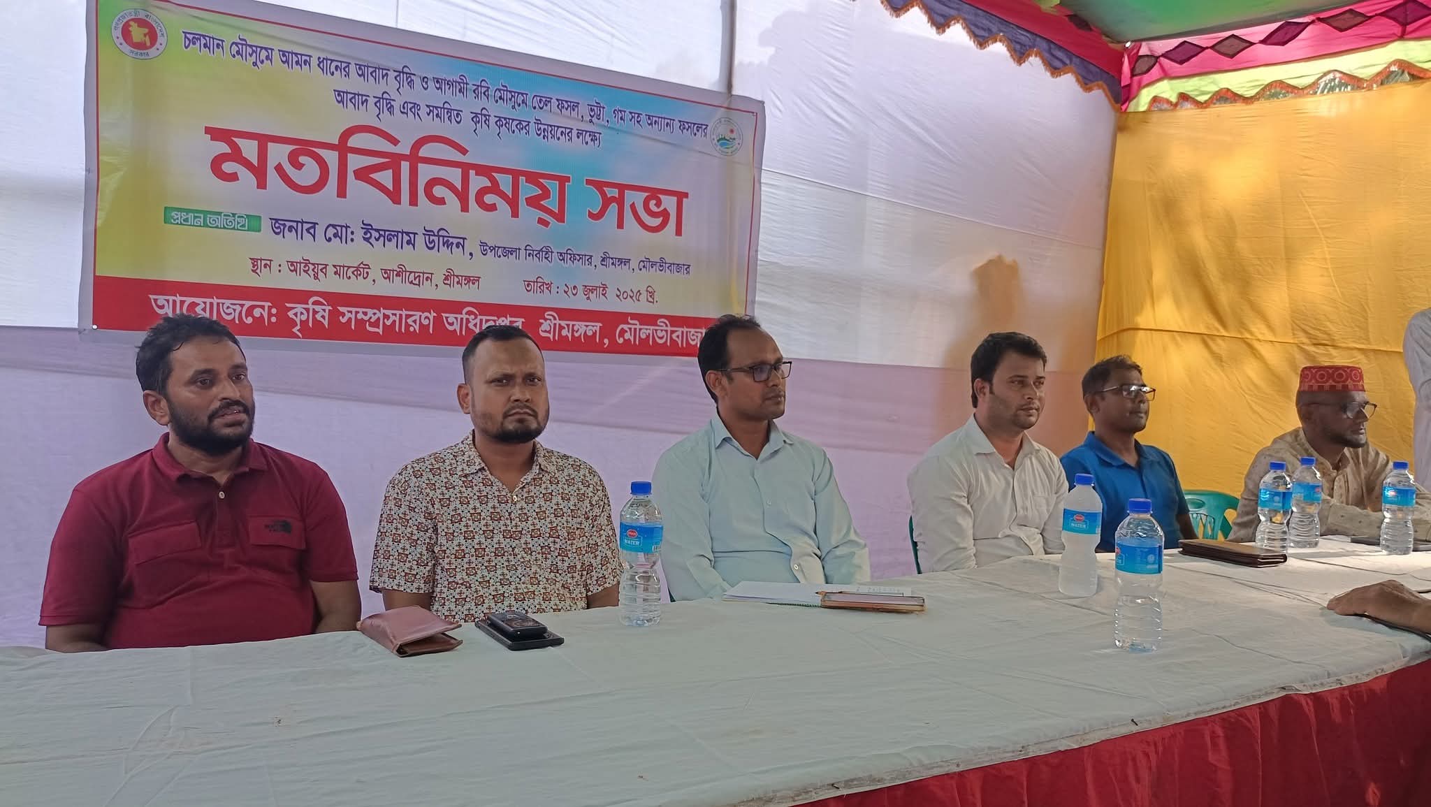 A exchange of views was held in Srimangal, Moulvibazar, with the aim of increasing the cultivation of Aman rice in the current season and increasing the cultivation of crops including oil, corn, wheat in the next Rabi season and developing integrated agricultural work.